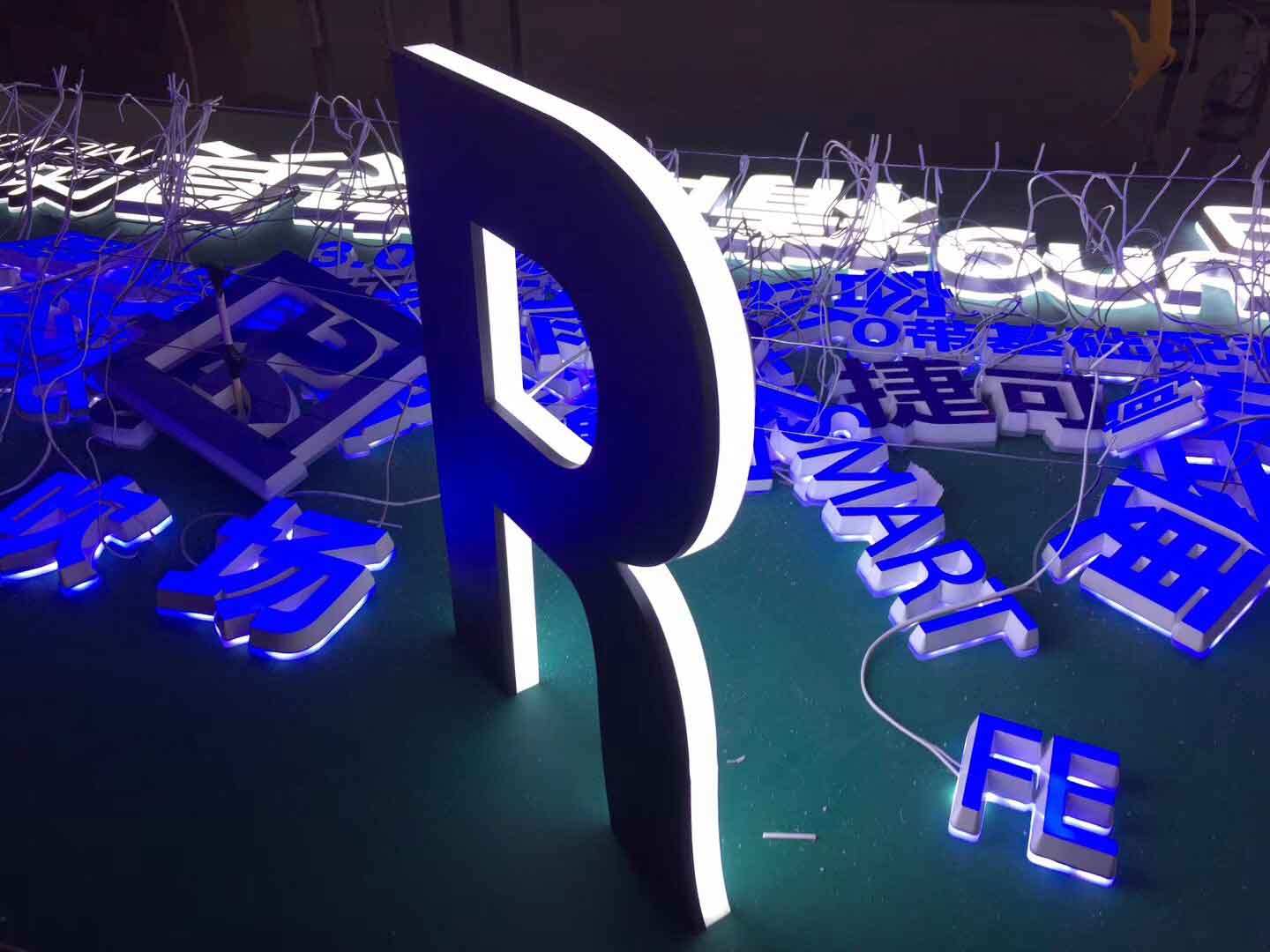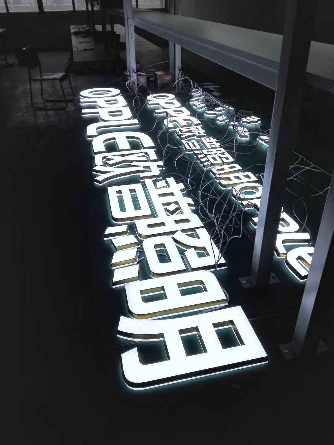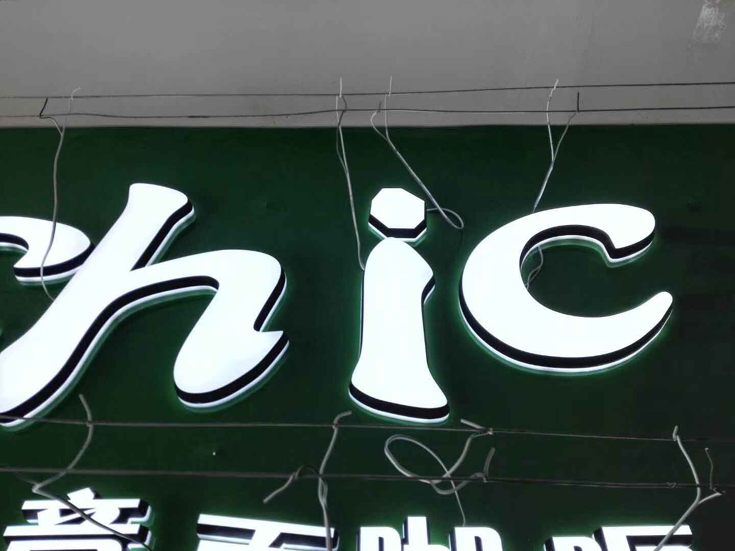 发光字是采用发光二级管(LED)作为光源,由字壳、面板、底板制作而成的发光标识。发光字具有色彩丰富、个性化 [1] 的特点,让标识更加人性化,对企业、商店、展览展示也起到重要的宣传作用。常见的有3D打印发光字、迷你字、铝边字、树脂字、不锈钢字、吸塑字、电镀字、冲孔灯珠外露、亚克力字、铁皮烤漆字、水晶字等。